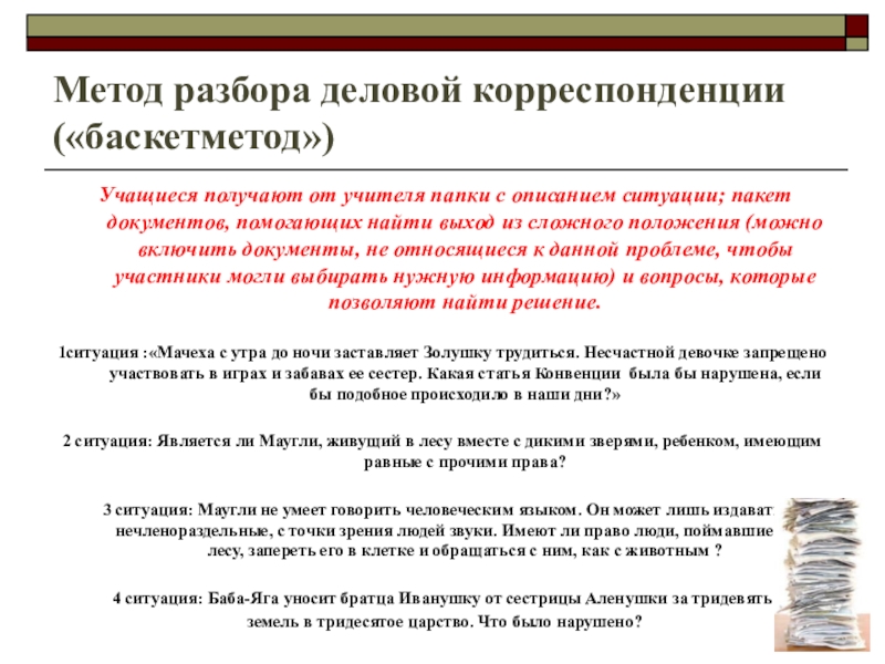 Слайд 10Метод разбора деловой корреспонденции («баскетметод»)