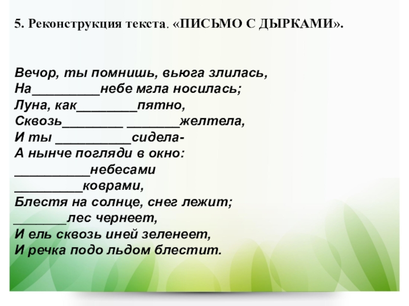 Слайд 135. Реконструкция текста. «ПИСЬМО С ДЫРКАМИ».
