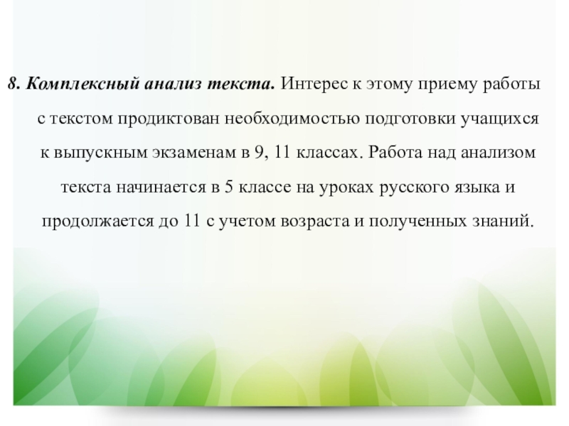 8. Комплексный анализ текста. Интерес к этому приему работы с текстом продиктован необходимостью