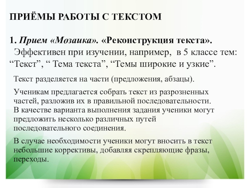 1. Прием «Мозаика». «Реконструкция текста».