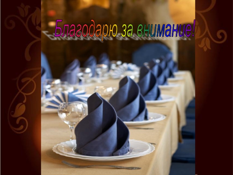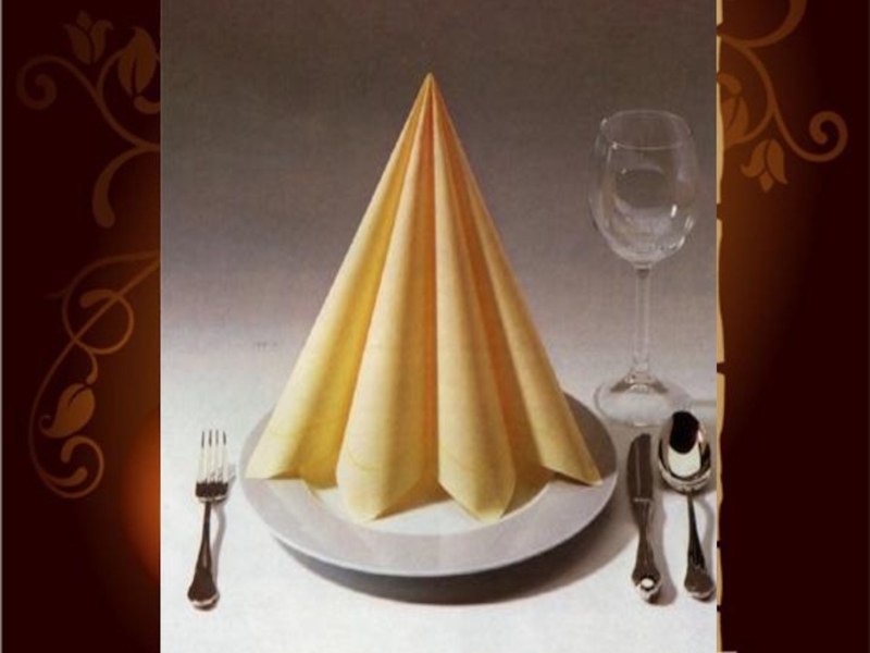 Для этого обязательного атрибута застолий использовали дорогие прочные ткани, их расшивали тесьмой и золотом. Каждая страна стремилась создать свой стиль в оформлении застолий, где салфеткам отводилась не последняя роль.