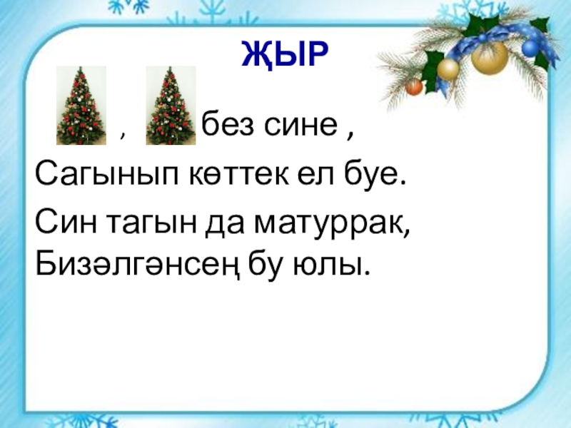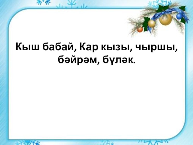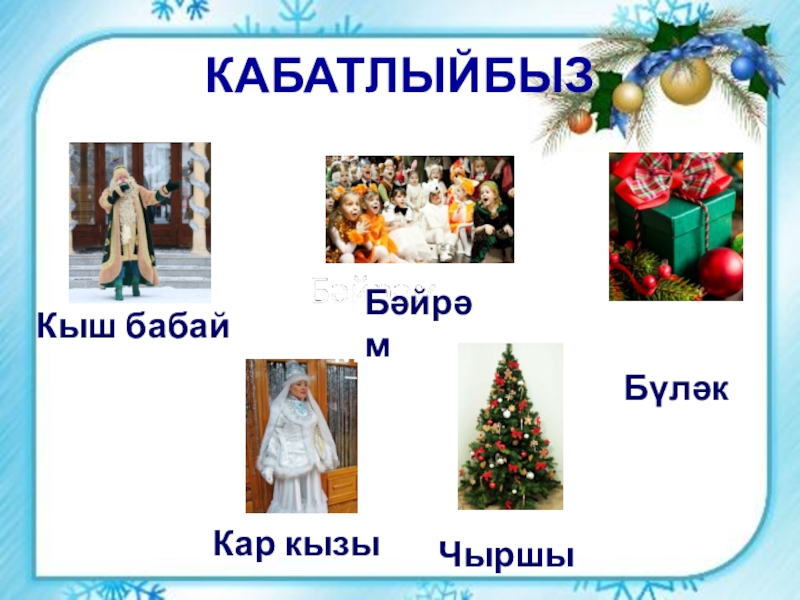 КАБАТЛЫЙБЫЗКыш бабайБәйрәмБәйрәмКар кызыБүләк Чыршы