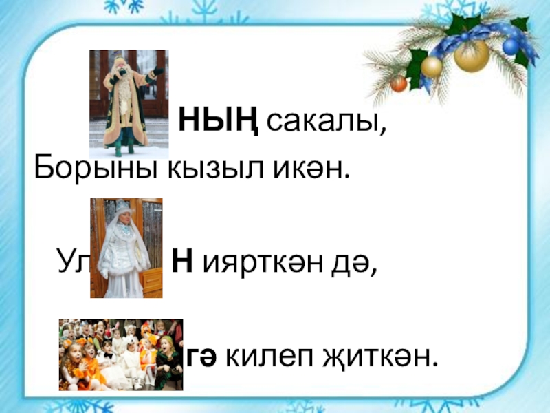 Кыш бабай, Кар кызы, чыршы, бәйрәм, бүләк.