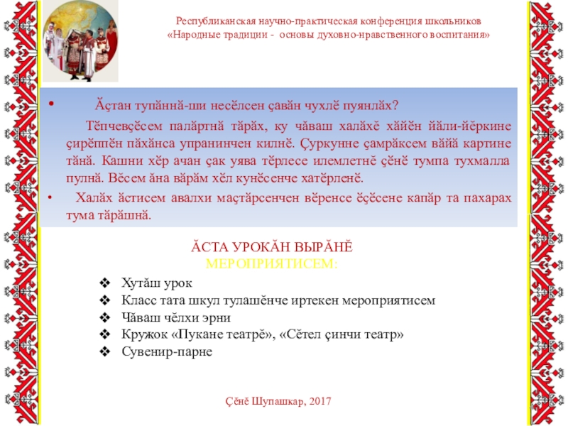 Чăвашсен çĕр пин сăмах, çĕр пин юрă, çĕр пин тĕрĕ.