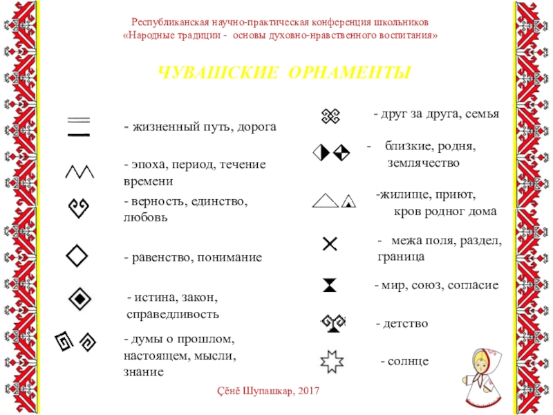 Чувашский узор — знаковое письмо, шифр-послание с разными значениями, схожее с руническими письменами.