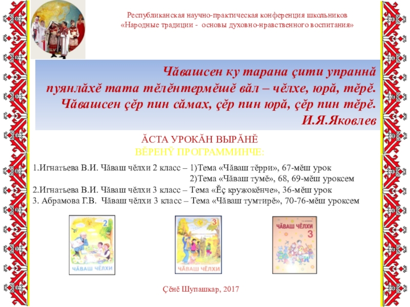 1.Игнатьева В.И. Чăваш чĕлхи 2 класс – 1)Тема «Чăваш тĕрри», 67-мĕш урок