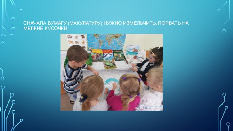 Задачи: Познакомить детей с изготовлением бумаги из старых газет, макулатуры, в условиях детского сада;