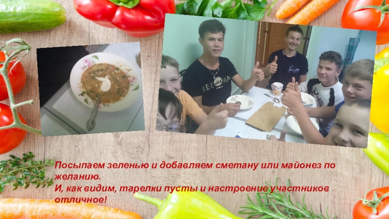 Слайд 11Посыпаем зеленью и добавляем сметану или майонез по желанию.