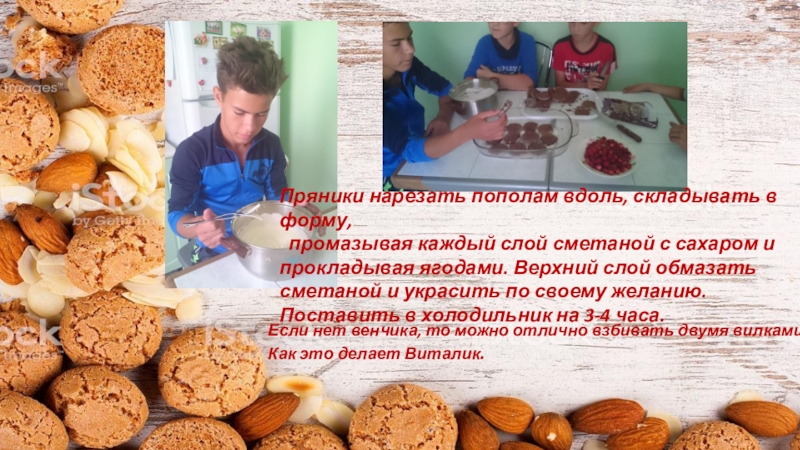 Слайд 14Пряники нарезать пополам вдоль, складывать в форму,