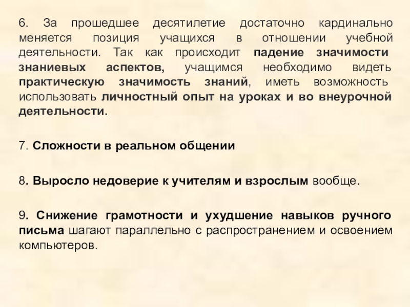 9. Снижение грамотности и ухудшение навыков ручного письма шагают параллельно с распространением и освоением компьютеров.