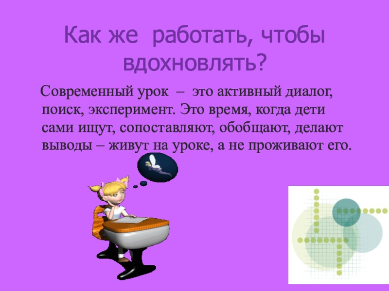 диалог, поиск, эксперимент. Это время, когда дети сами ищут, сопоставляют, обобщают, делают выводы – живут на уроке, а не проживают его.