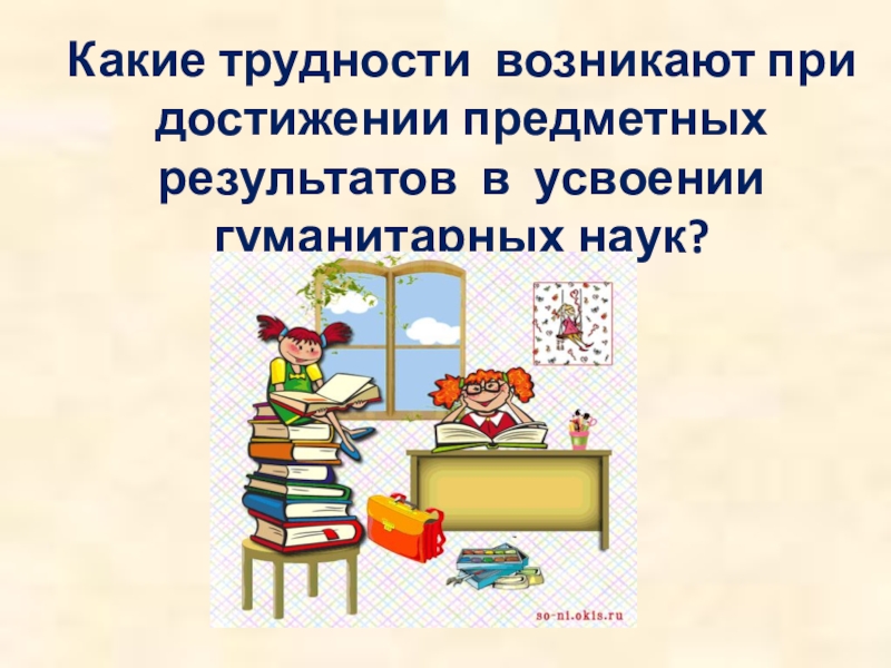 Слайд 4Какие трудности возникают при достижении предметных результатов в усвоении гуманитарных наук?