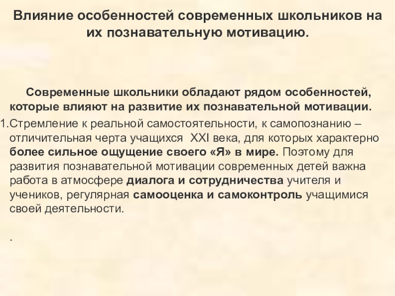 Влияние особенностей современных школьников на их познавательную мотивацию.