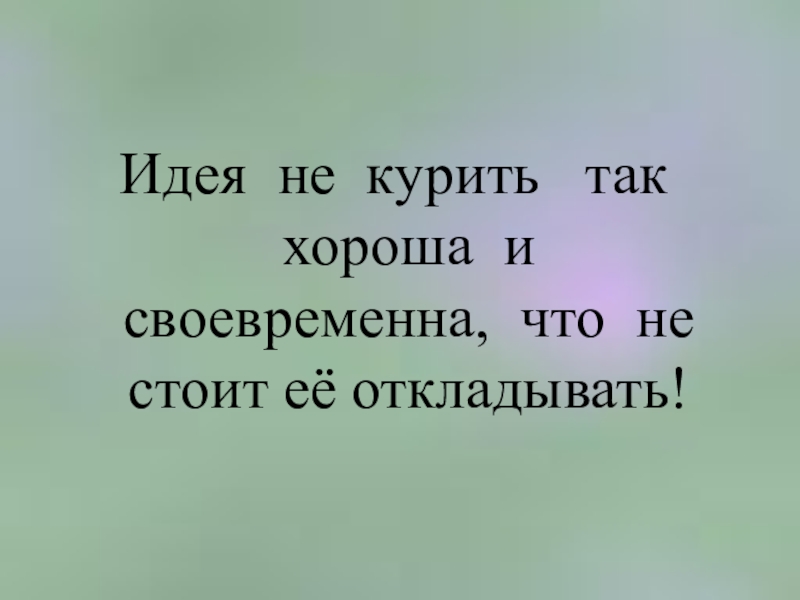 Идея не курить  так хороша и своевременна, что не стоит её откладывать!