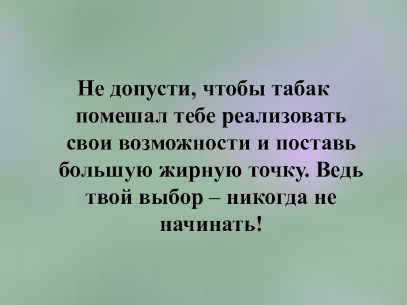 Не допусти, чтобы табак помешал тебе реализовать свои возможности и поставь большую жирную точку. Ведь твой выбор