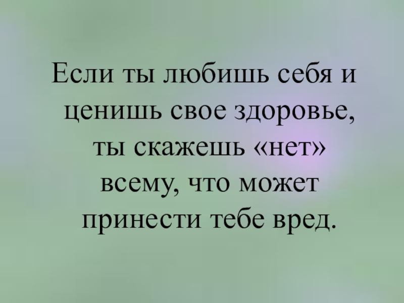 Если ты любишь себя и ценишь свое здоровье, ты скажешь «нет» всему, что может принести тебе