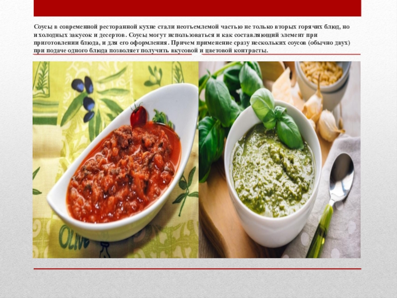 Слайд 2Соусы в современной ресторанной кухне стали неотъемлемой частью не только вторых