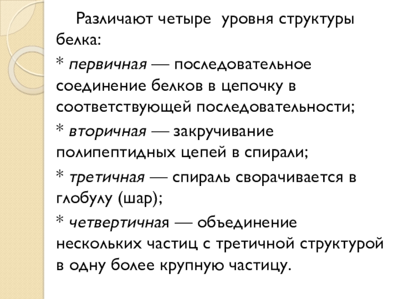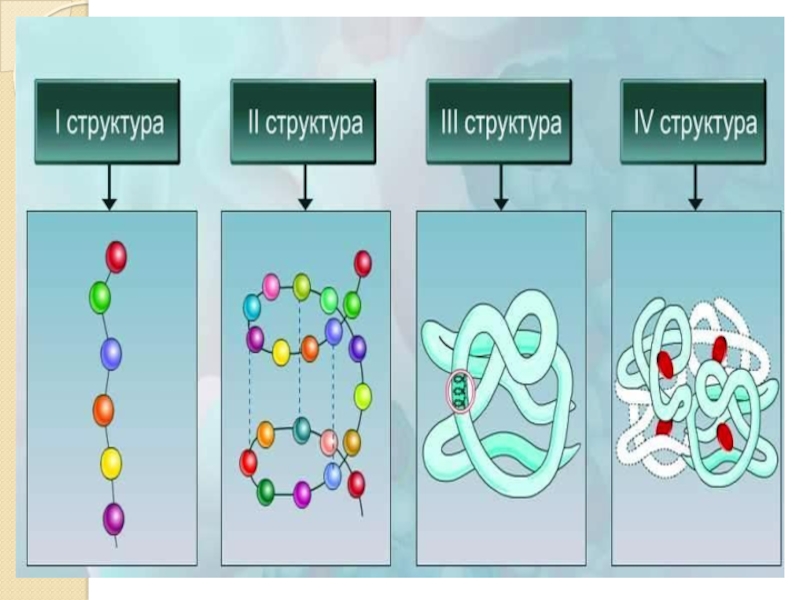 Слайд 10Различают четыре уровня структуры белка: