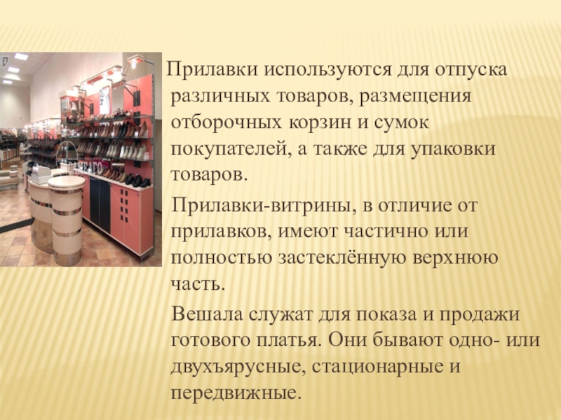 Слайд 8 Прилавки используются для отпуска различных товаров, размещения отборочных корзин