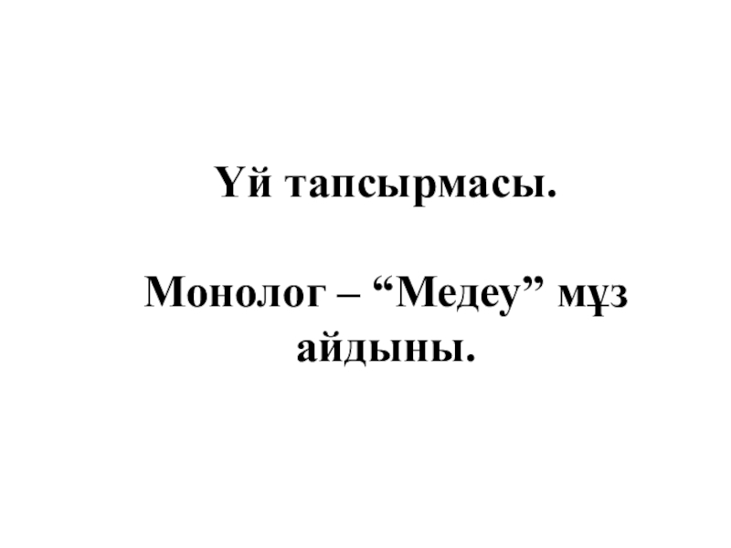 Слайд 15Үй тапсырмасы. Монолог – “Медеу” мұз айдыны.