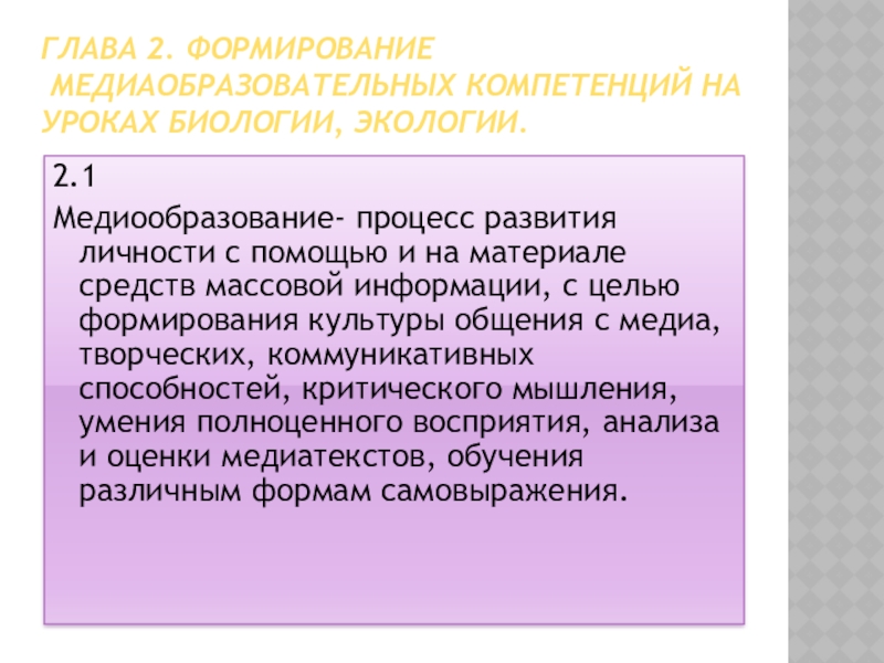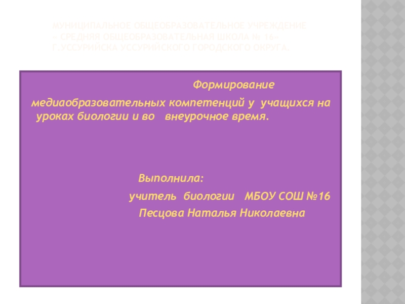 медиаобразовательных компетенций у учащихся на уроках биологии и во внеурочное время.