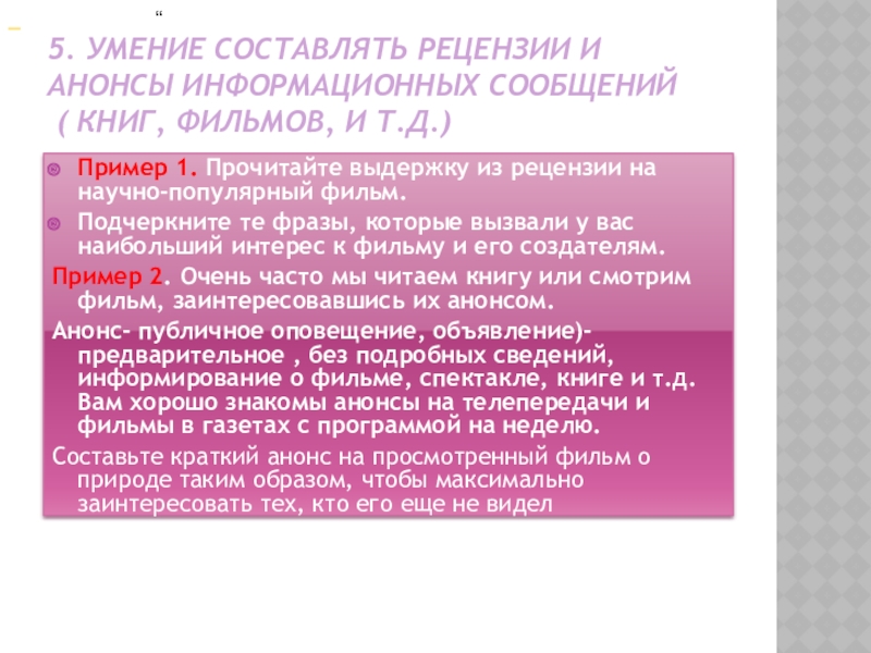 Пример 1. Прочитайте выдержку из рецензии на научно-популярный фильм.