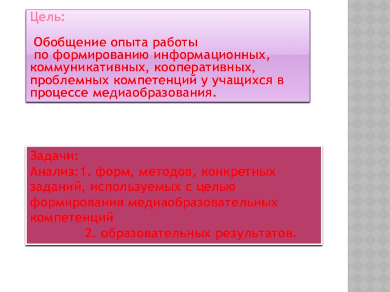 Анализ:1. форм, методов, конкретных заданий, используемых с целью формирования медиаобразовательных компетенций