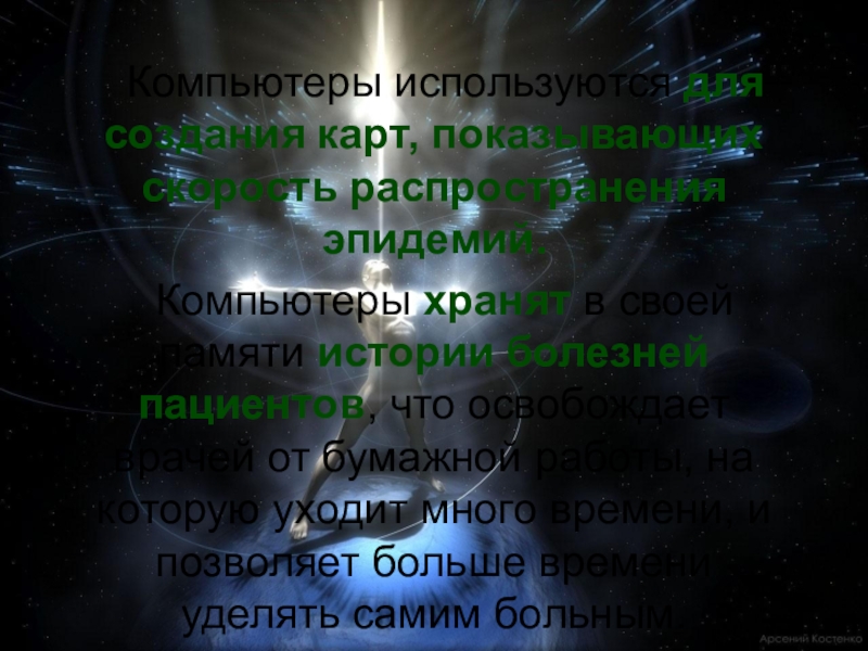Слайд 41Компьютеры используются для создания карт, показывающих скорость распространения эпидемий.