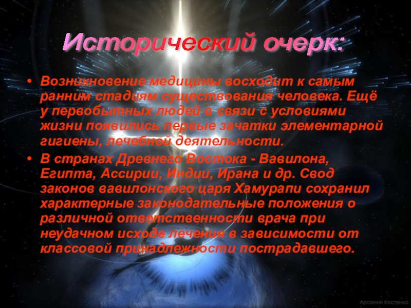Слайд 9Возникновение медицины восходит к самым ранним стадиям существования человека. Ещё у