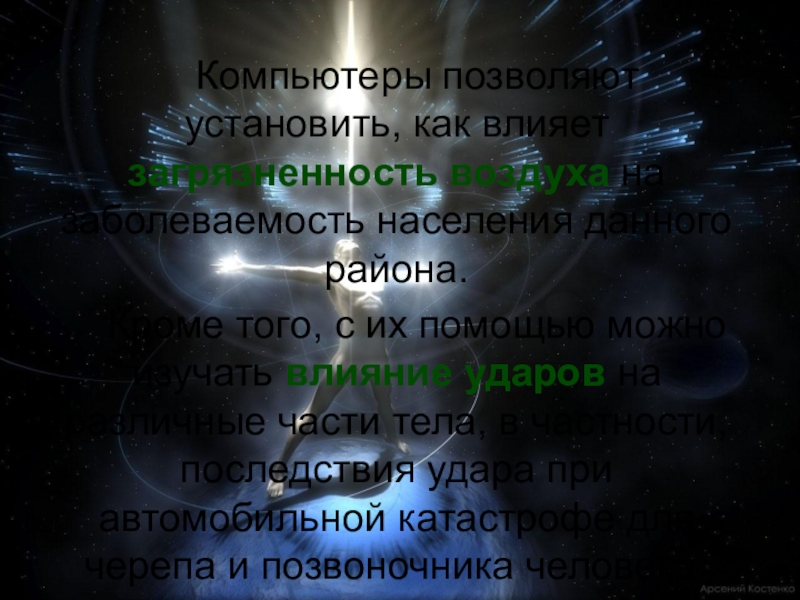 Слайд 39Компьютеры позволяют установить, как влияет загрязненность воздуха на заболеваемость населения данного