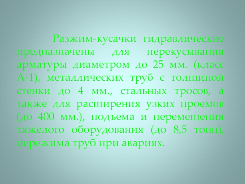 Слайд 7 Разжим-кусачки гидравлические предназначены для перекусывания арматуры диаметром до