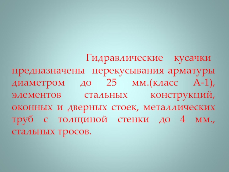 Слайд 5 Гидравлические кусачки предназначены перекусывания арматуры диаметром до 25