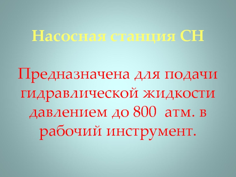 Слайд 14Насосная станция СН Предназначена для подачи гидравлической жидкости давлением до 800 атм.