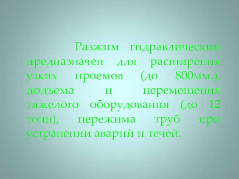 Слайд 3 Разжим гидравлический предназначен для расширения узких проемов (до