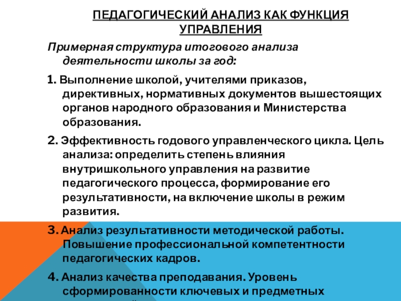 2. Эффективность годового управленческого цикла. Цель анализа: определить степень влияния внутришкольного управления на развитие педагогического процесса, формирование его результативности, на включение школы в режим развития.