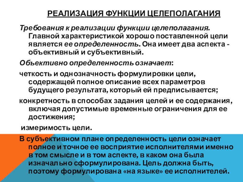 Требования к реализации функции целеполагания. Главной характеристикой хорошо поставленной