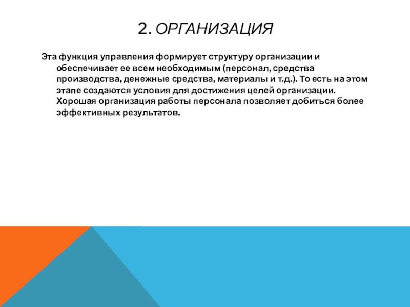 Эта функция управления формирует структуру организации и обеспечивает ее всем
