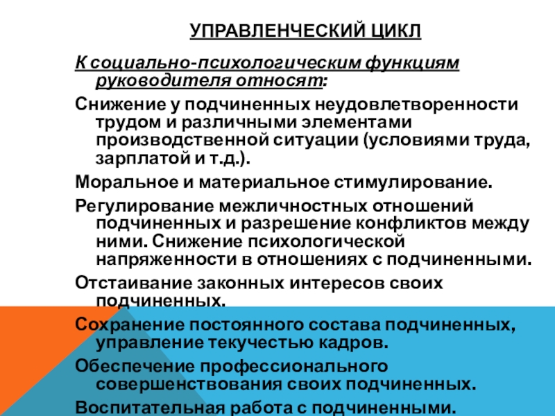 Регулирование межличностных отношений подчиненных и разрешение конфликтов между ними. Снижение психологической напряженности в отношениях с подчиненными.