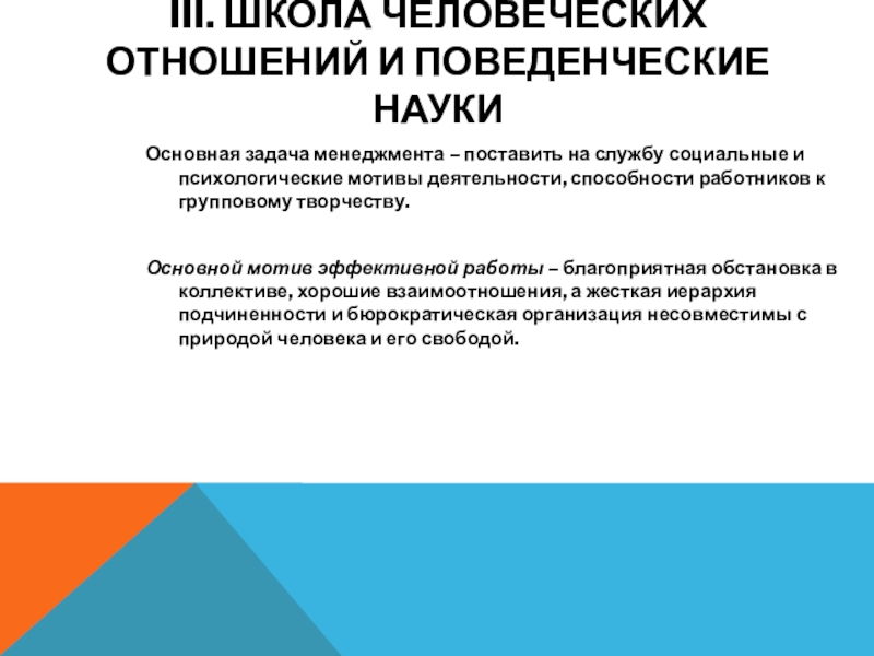 Слайд 17III. Школа человеческих отношений и поведенческие науки