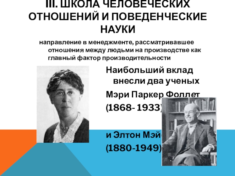 Слайд 18III. Школа человеческих отношений и поведенческие науки