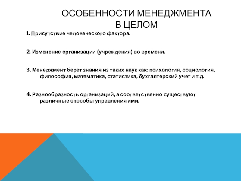 4. Разнообразность организаций, а соответственно существуют различные способы управления ими.