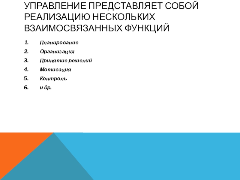 Слайд 6Управление представляет собой реализацию нескольких взаимосвязанных функций