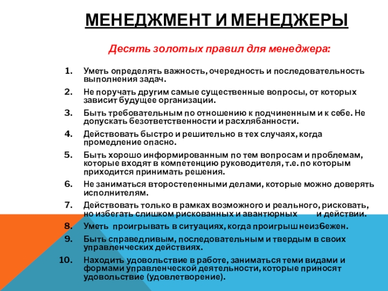 Управление организацией должно строиться на основе четырех «основных великих принципов»: