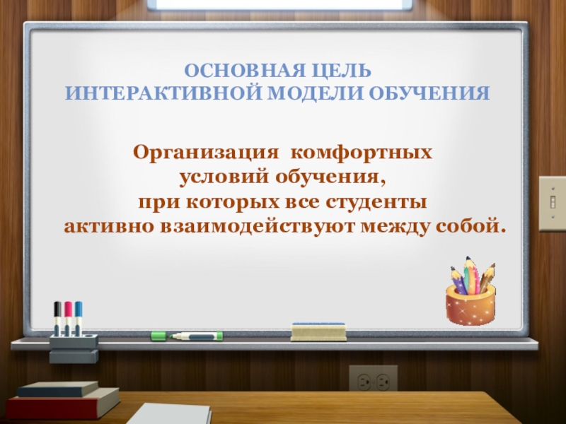 Основная цель интерактивной модели обученияОрганизация комфортных условий обучения, при которых все студенты активно взаимодействуют между собой.