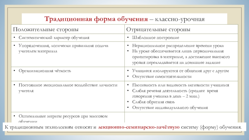 К традиционным технологиям относят и лекционно-семинарско-зачётную систему