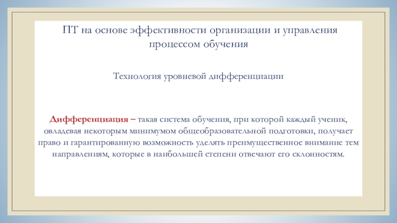 Слайд 7 ПТ на основе эффективности организации и управления процессом обучения