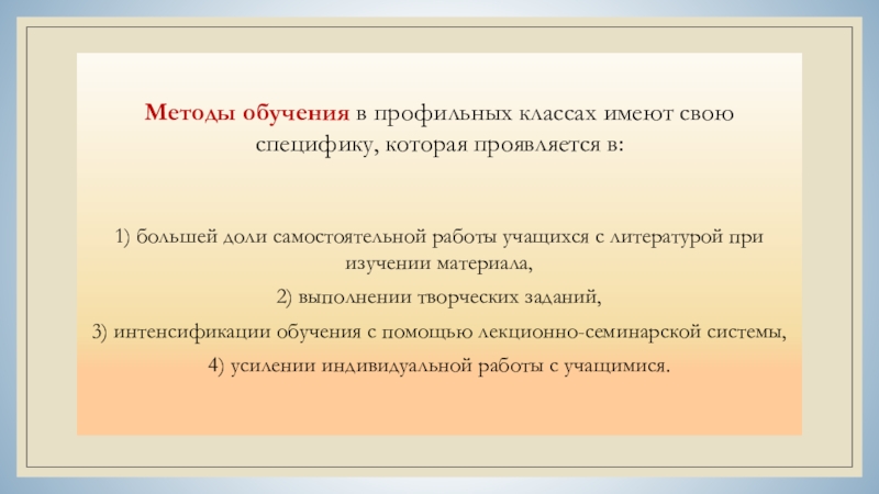 Методы обучения в профильных классах имеют свою специфику, которая проявляется в: