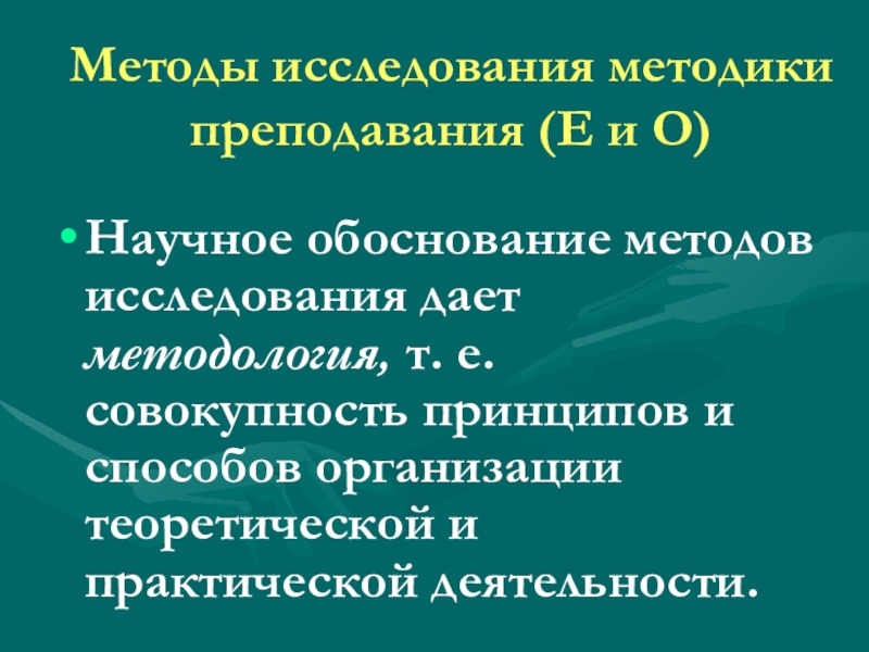 Слайд 14Методы исследования методики преподавания (Е и О)