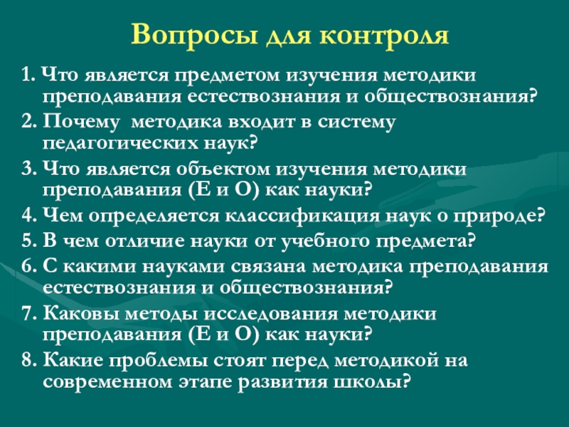 3. Что является объектом изучения методики преподавания (Е и О) как науки?