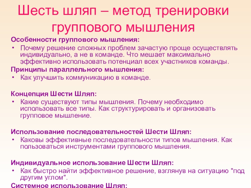Слайд 8Шесть шляп – метод тренировки группового мышления